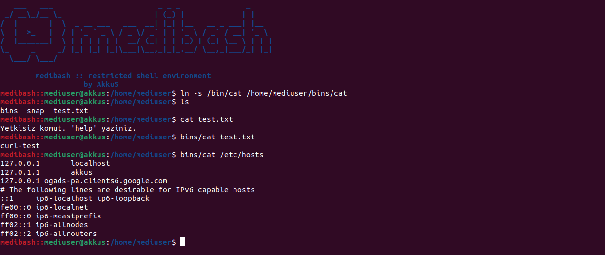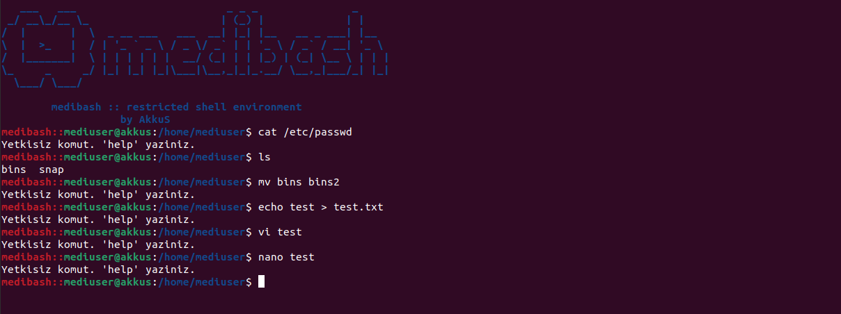 medibash gibi bir kısıtlanmış kabuk oluşturulmak istendiğinde saldırgan gözünden incelemek ve test etmek oldukça önemlidir.