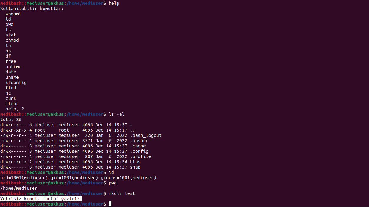medibash: C ile Basit ve Kontrollü Bir Restricted Shell Tasarımı