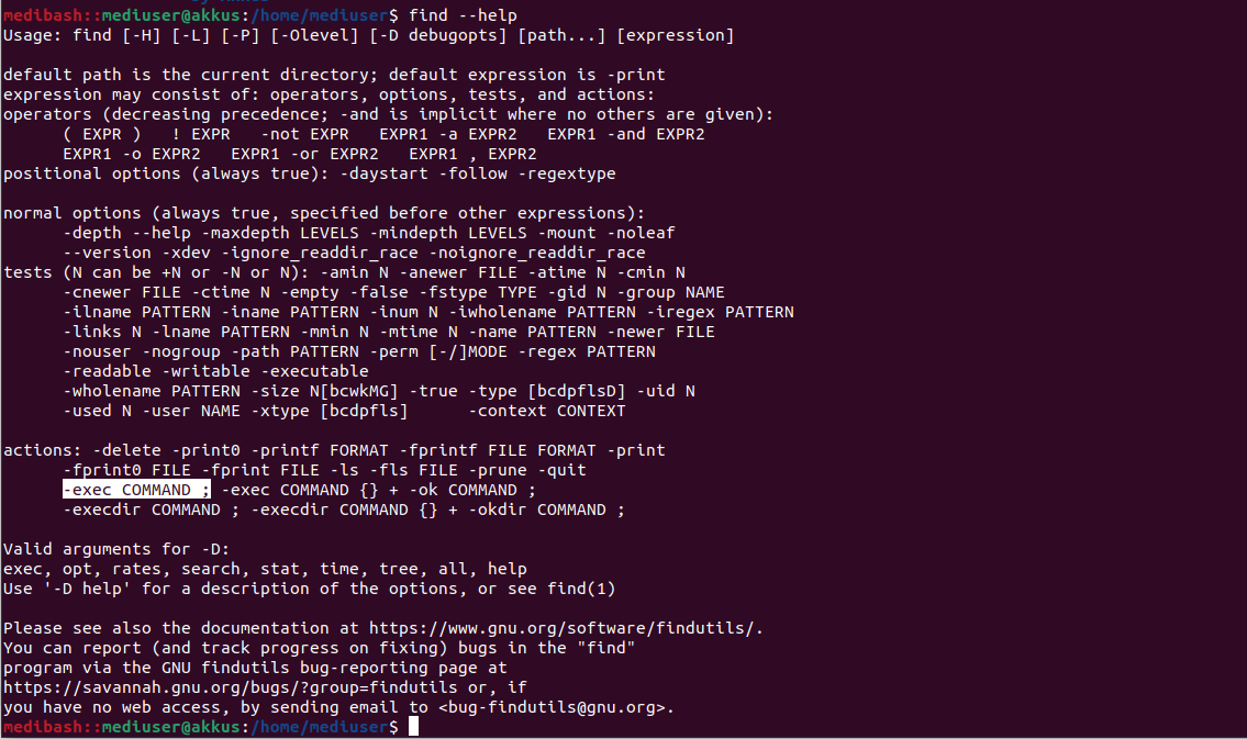 medibash içerisinde tanımlı diğer komutlardan birisi ise "find" komutudur. Find, Unix/Linux sistemlerinde dosya ve dizinleri belirli kriterlere göre aramak ve işlem yapmak için kullanılan güçlü bir komuttur. Saldırganlar find komutunun "-exec" parametresinin nelere yol açabildiğini fark edebilir.Curl ile medibash Lokal Dosya Okuma/Yazma