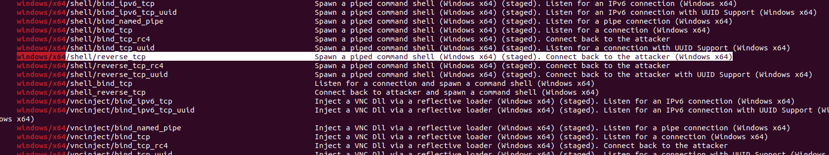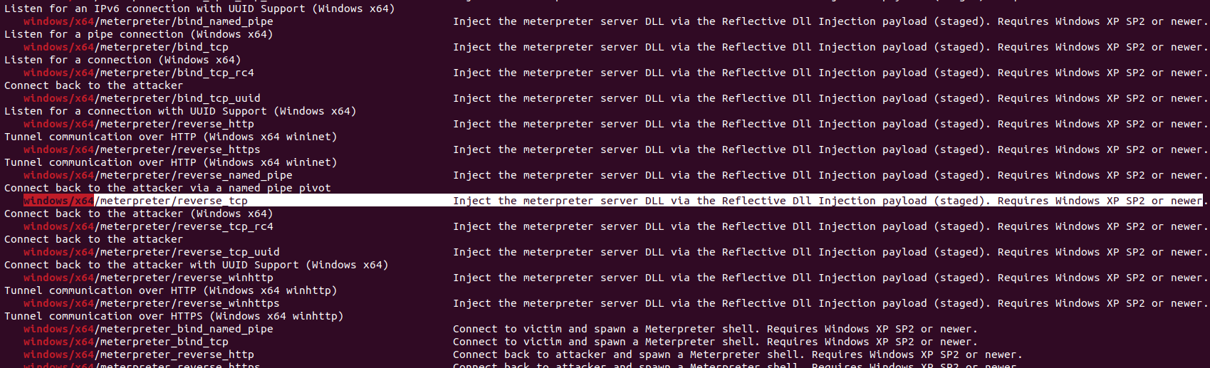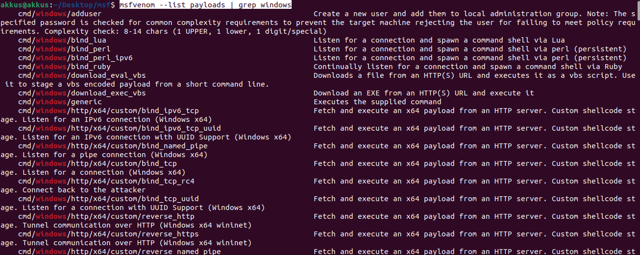 Örneğin windows/x64/shell/reverse_tcp veya windows/x64/meterpreter/reverse_tcp bizim zararlı kodumuz olabilir.