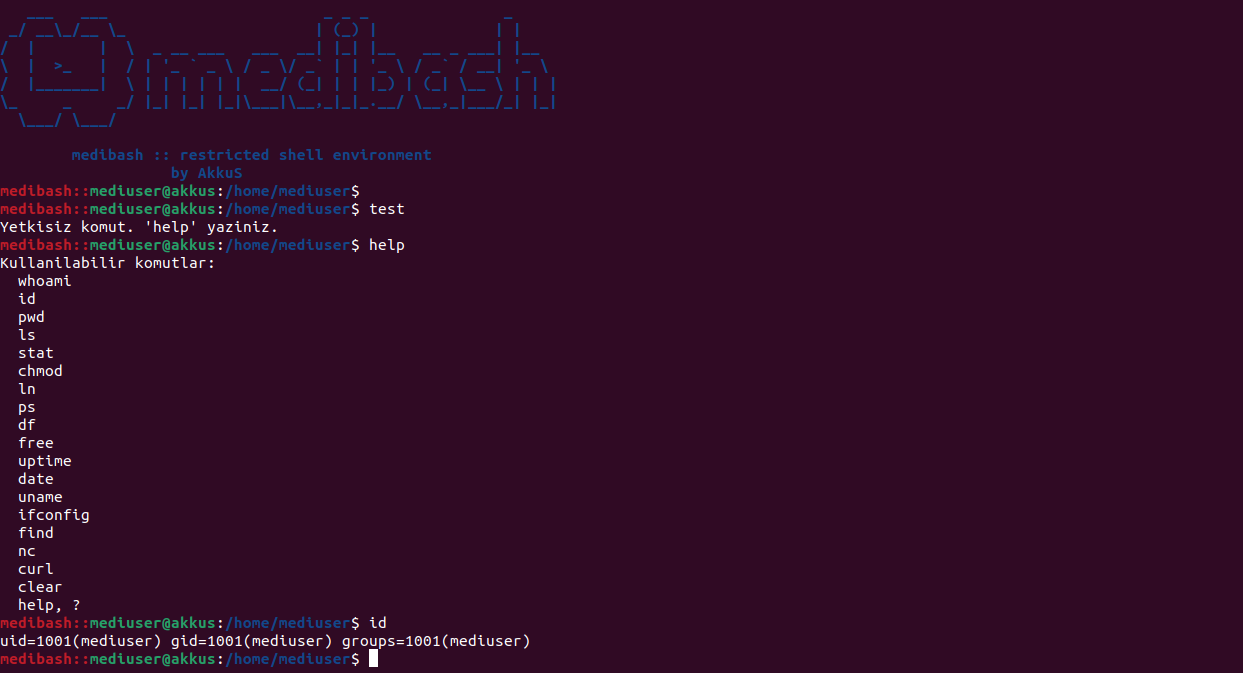 medibash gibi bir kısıtlanmış kabuk oluşturulmak istendiğinde saldırgan gözünden incelemek ve test etmek oldukça önemlidir.