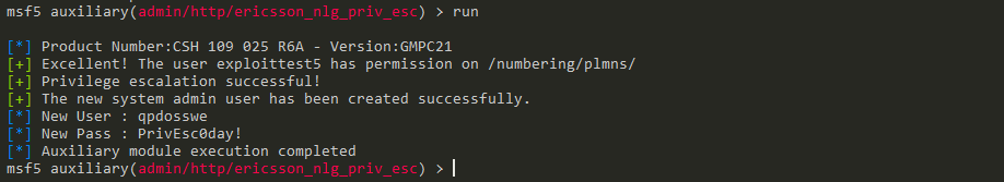 This module exploits privilege escalation vulnerability in Ericsson Network Location Mobile Positioning Systems.