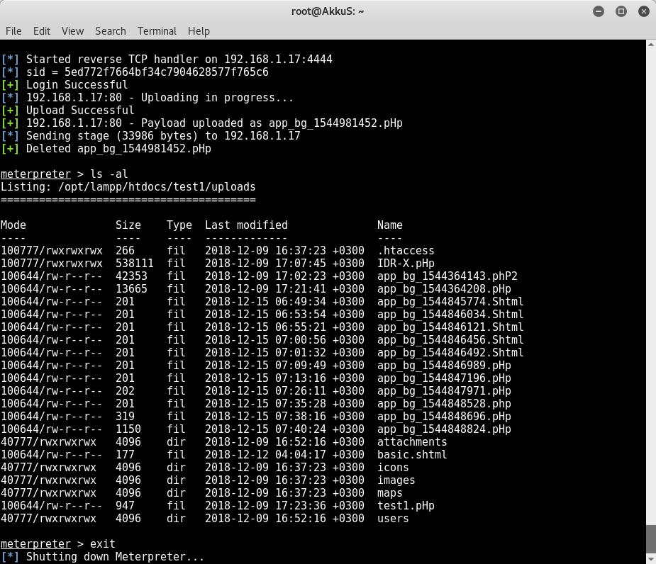 The module is uploading by create a payload as above to get Meterpreter session.